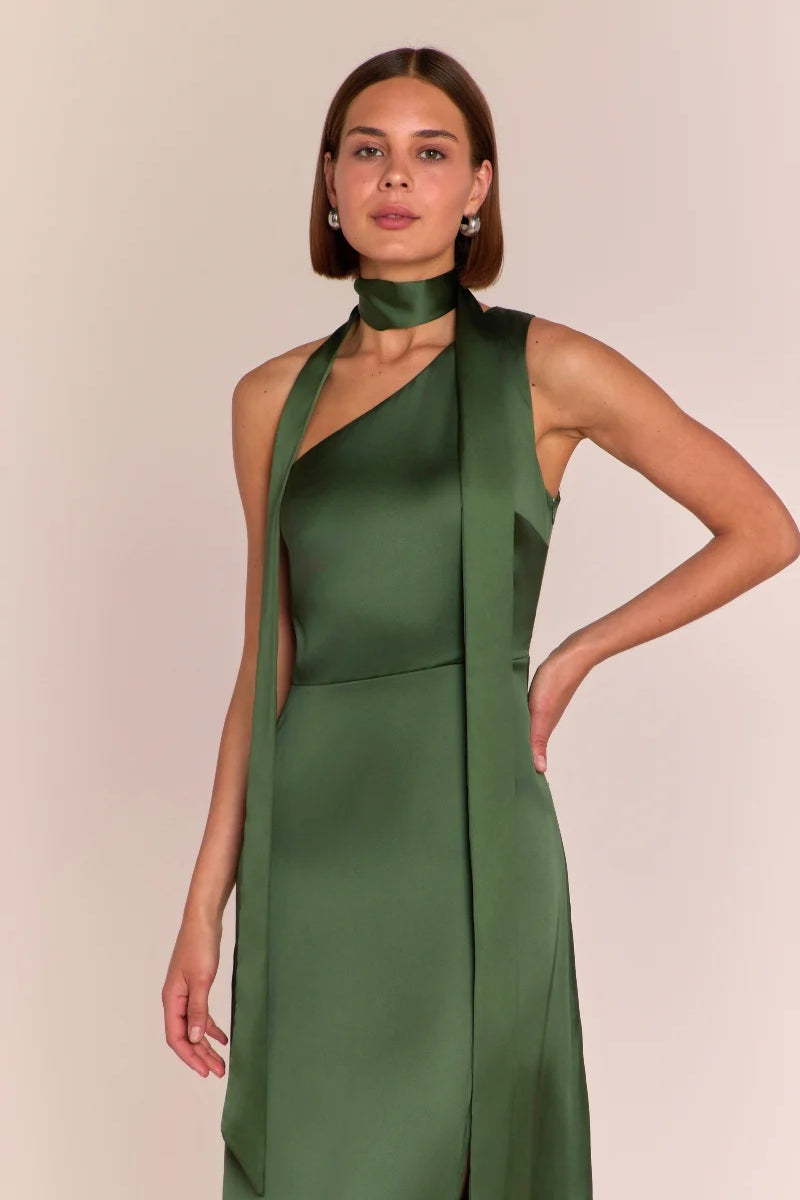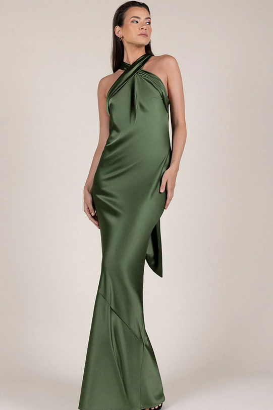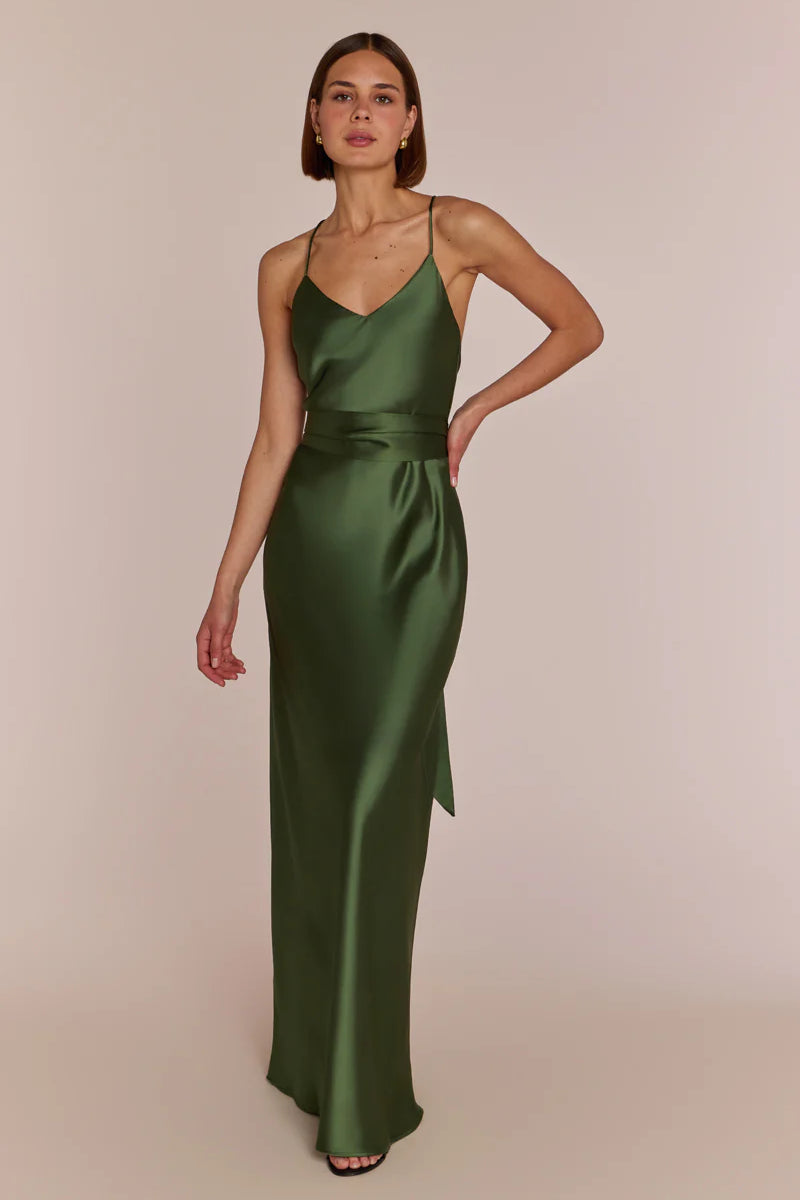 REWRITTEN Roma Bridesmaid Dress - Olive Green Satin