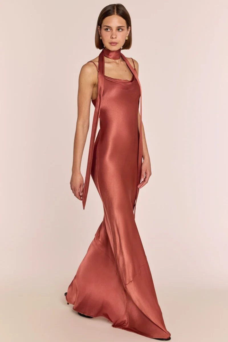 REWRITTEN Pollenca Bridesmaid Dress in Terracotta Satin