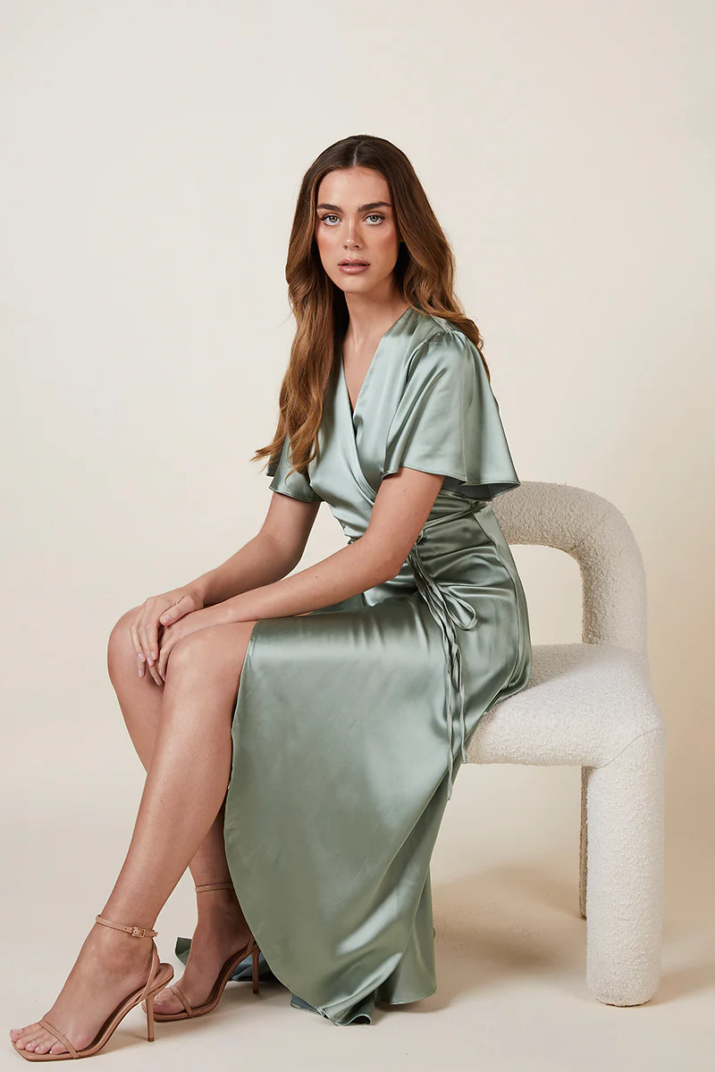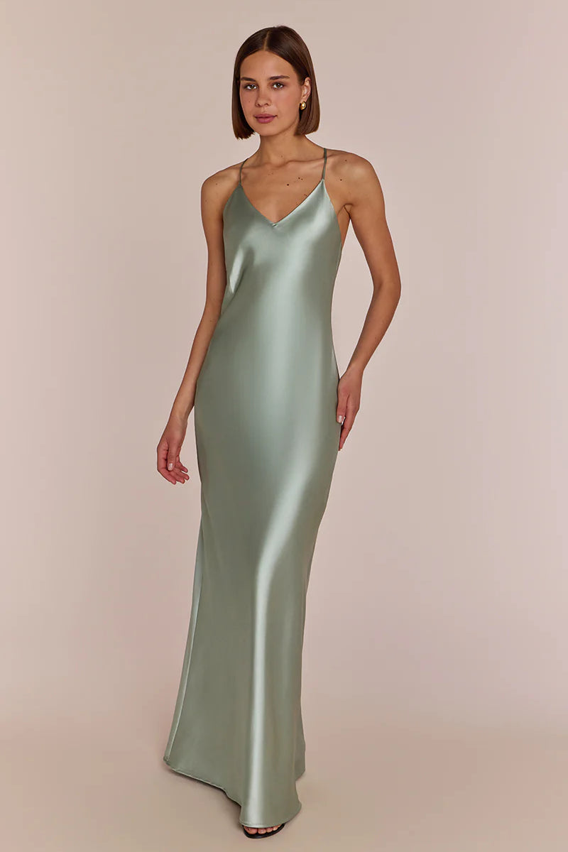 REWRITTEN Roma Bridesmaid Dress in Sage Green Satin