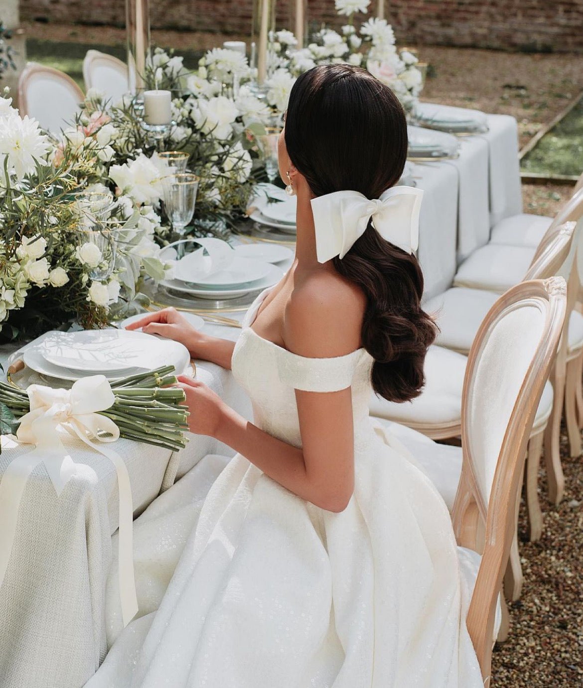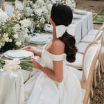 Beautiful white satin bow with a comb back for easy application with and without your veil.