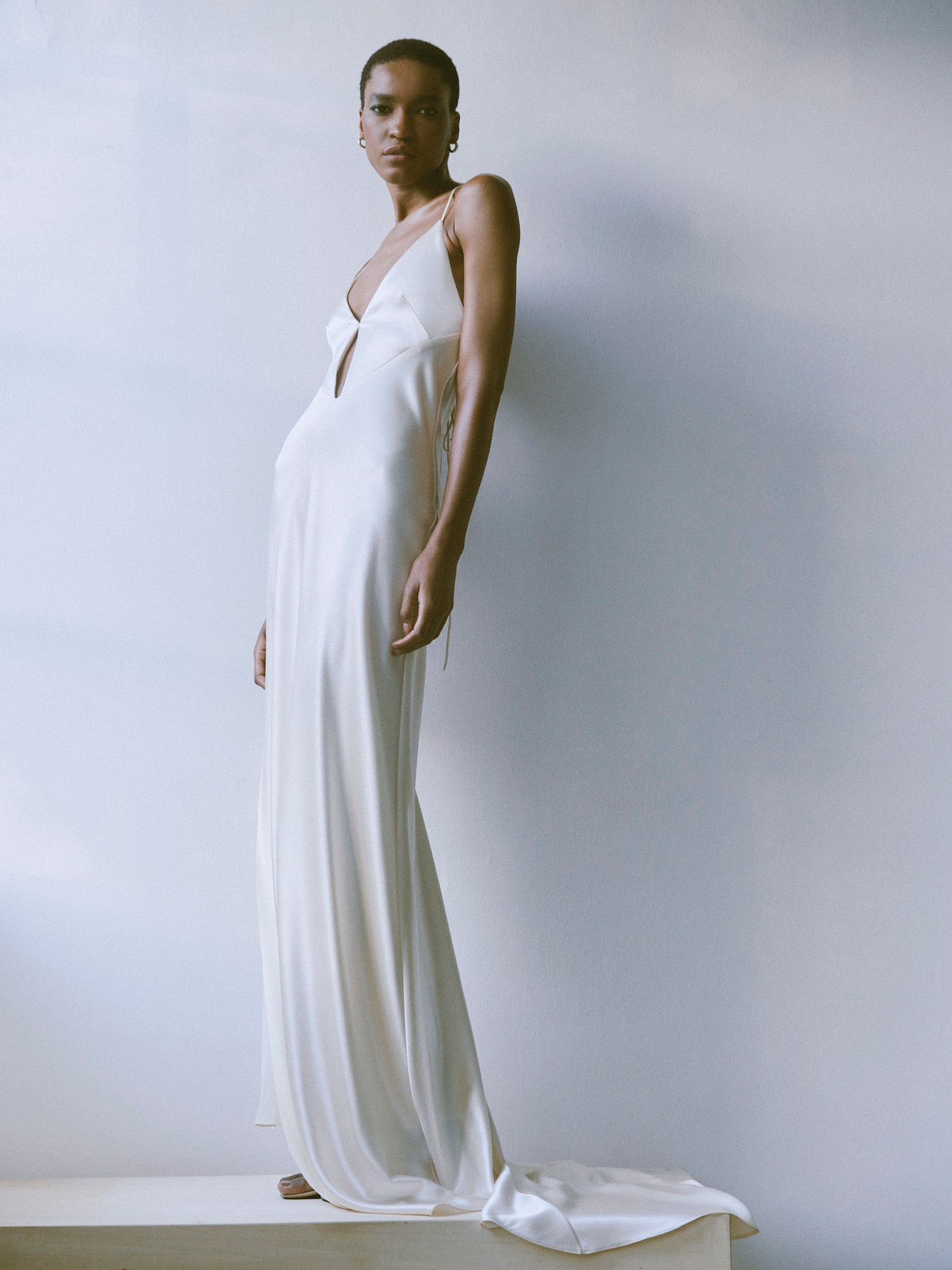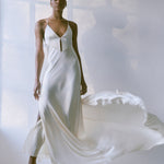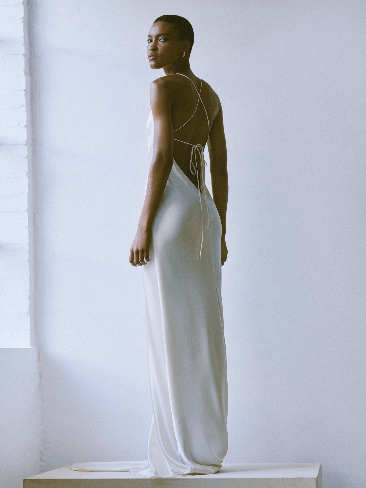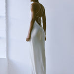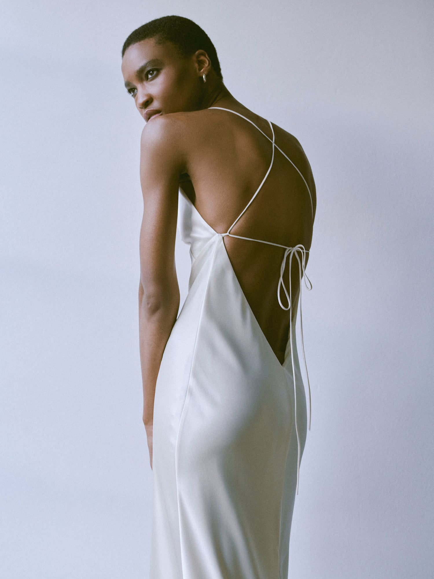 A statement dress that will be sticking with your wardrobe for ages. Made from heavy satin and cut on the bias. It has a full floor length with a puddle train and a high slit at the side. Body : 80% triacetate 20 % polyester. Self lined