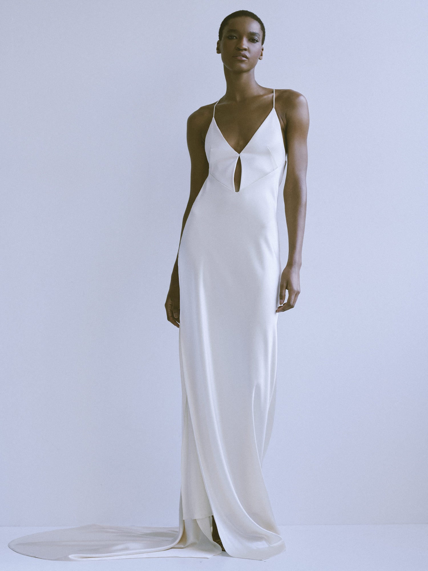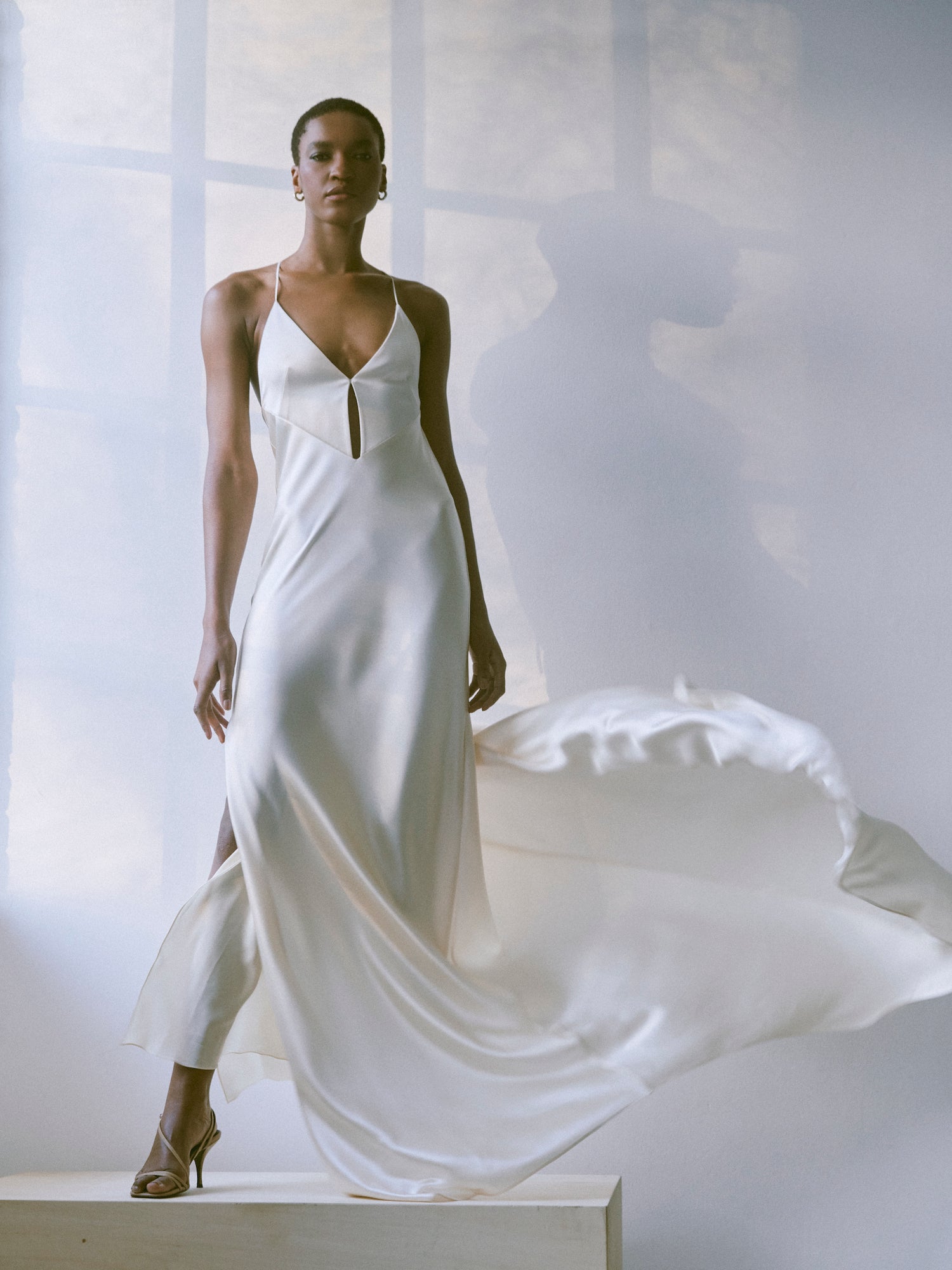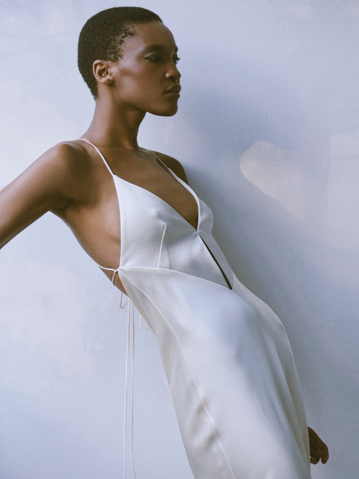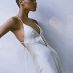 A statement dress that will be sticking with your wardrobe for ages. Made from heavy satin and cut on the bias. It has a full floor length with a puddle train and a high slit at the side. Body : 80% triacetate 20 % polyester. Self lined