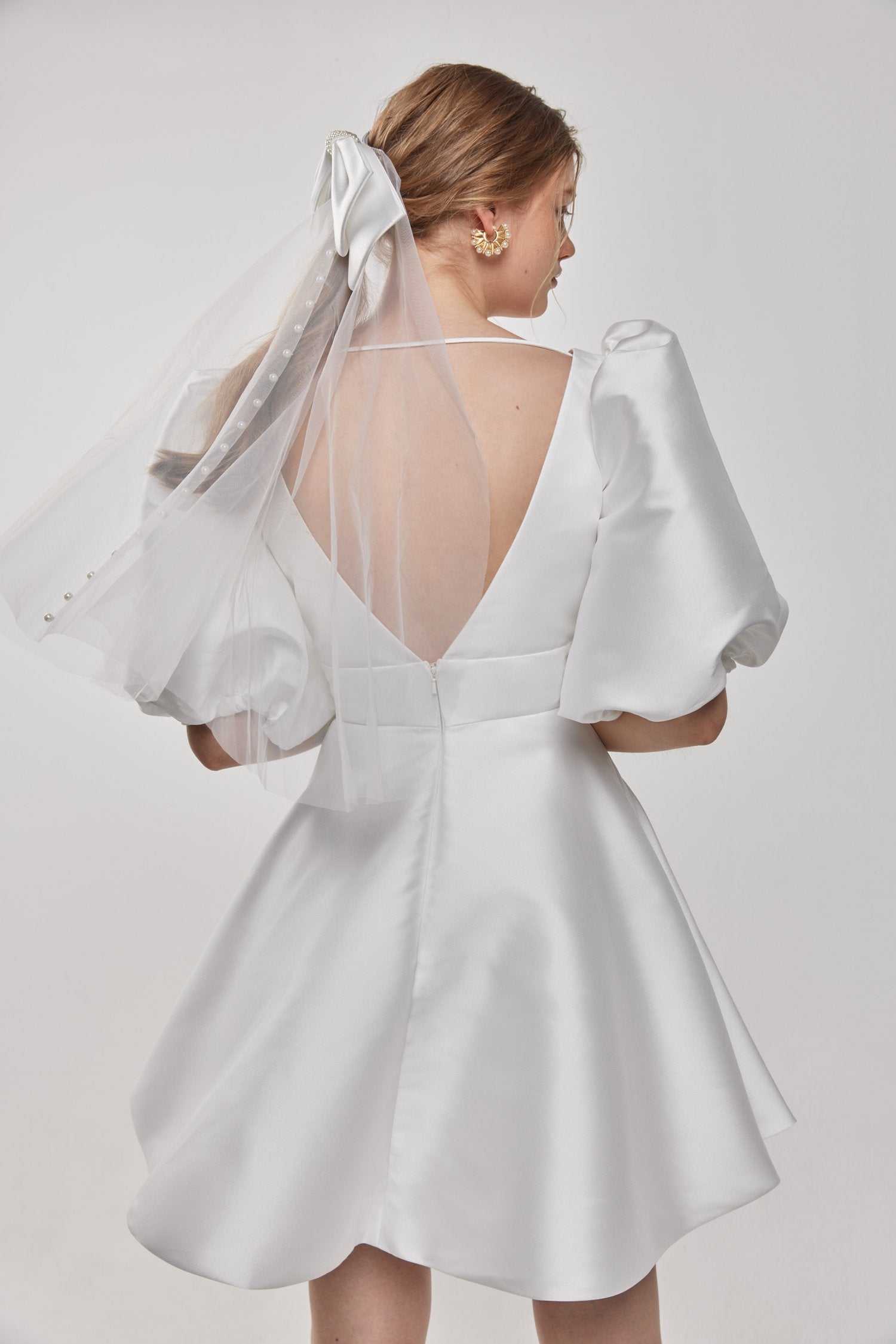 With its opulent details, Belle is also the perfect mini-dress for a cocktail wedding, civil ceremony, or to change into for the first dance.