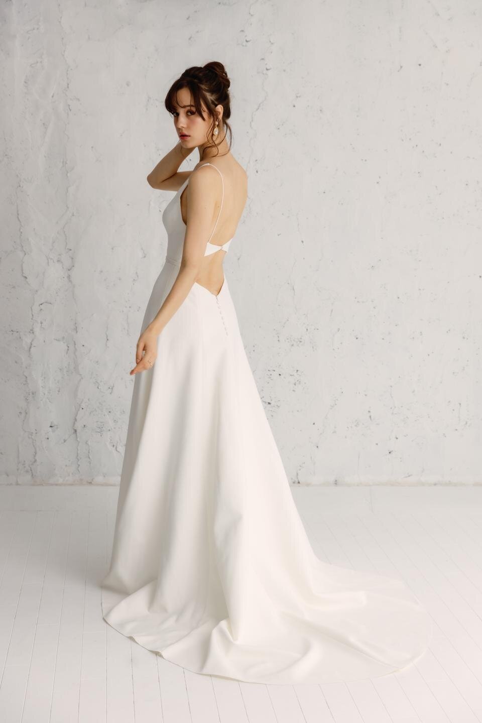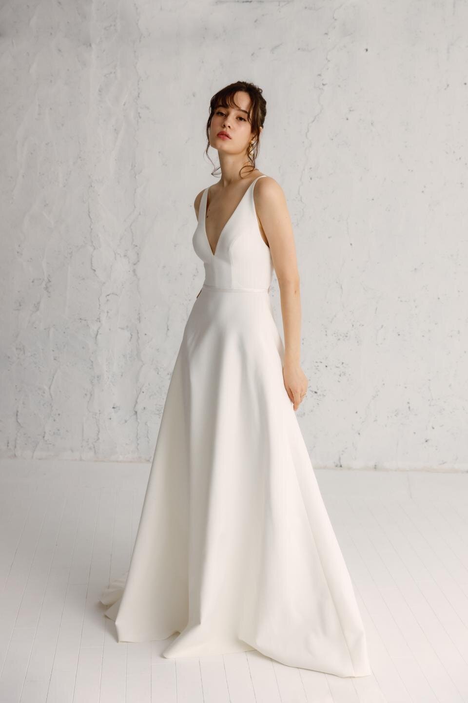The epitome of understated luxury, our A-line Kaizen gown is unapologetically feminine and refined with an unmistakable edge.