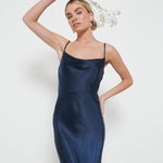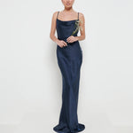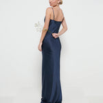Made out of a luxurious satin with a silk feel and lavish sheen. It has been intricately designed with a flattering cowl neckline and spaghetti straps to give a simplistic, feminine look. The maxi-length drapes beautifully to the floor, your bridesmaids will feel their best on your big day.