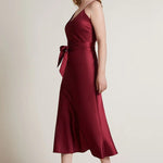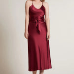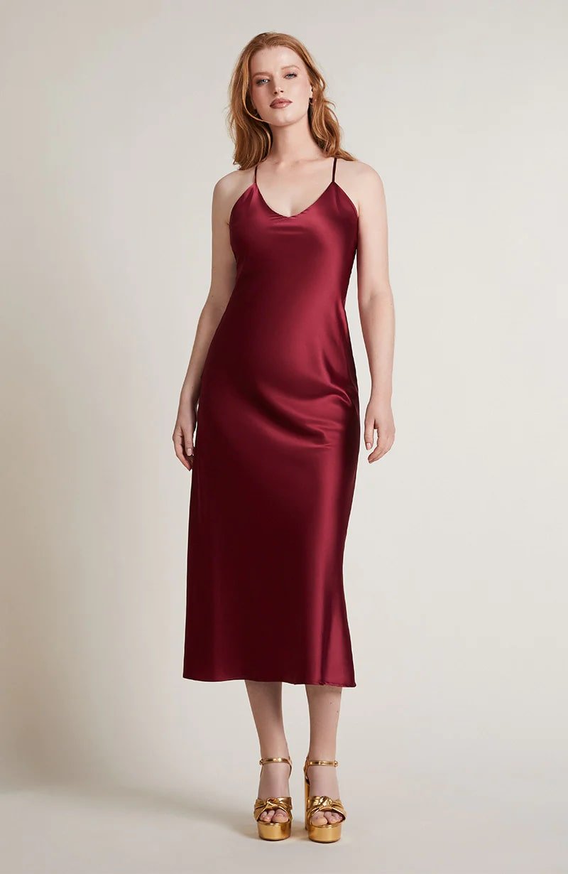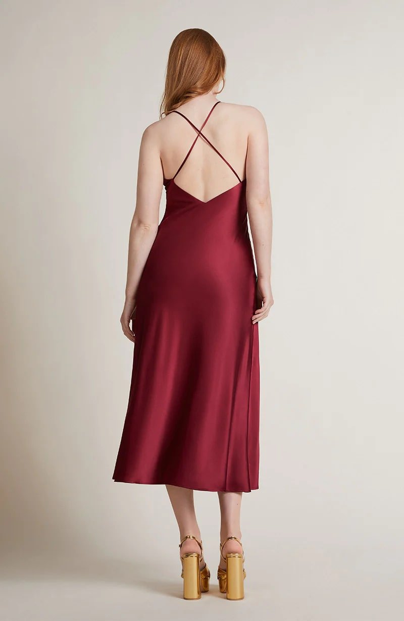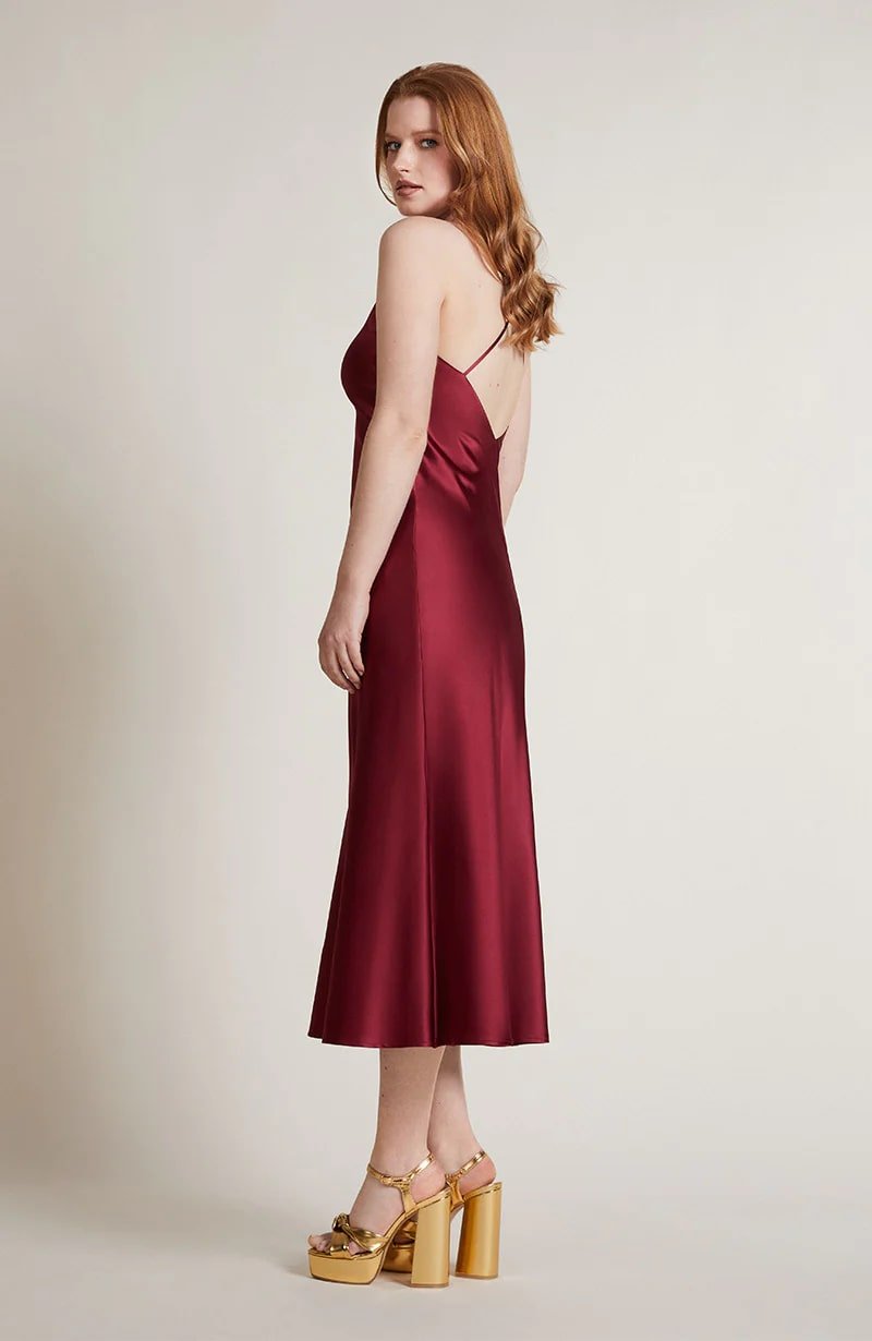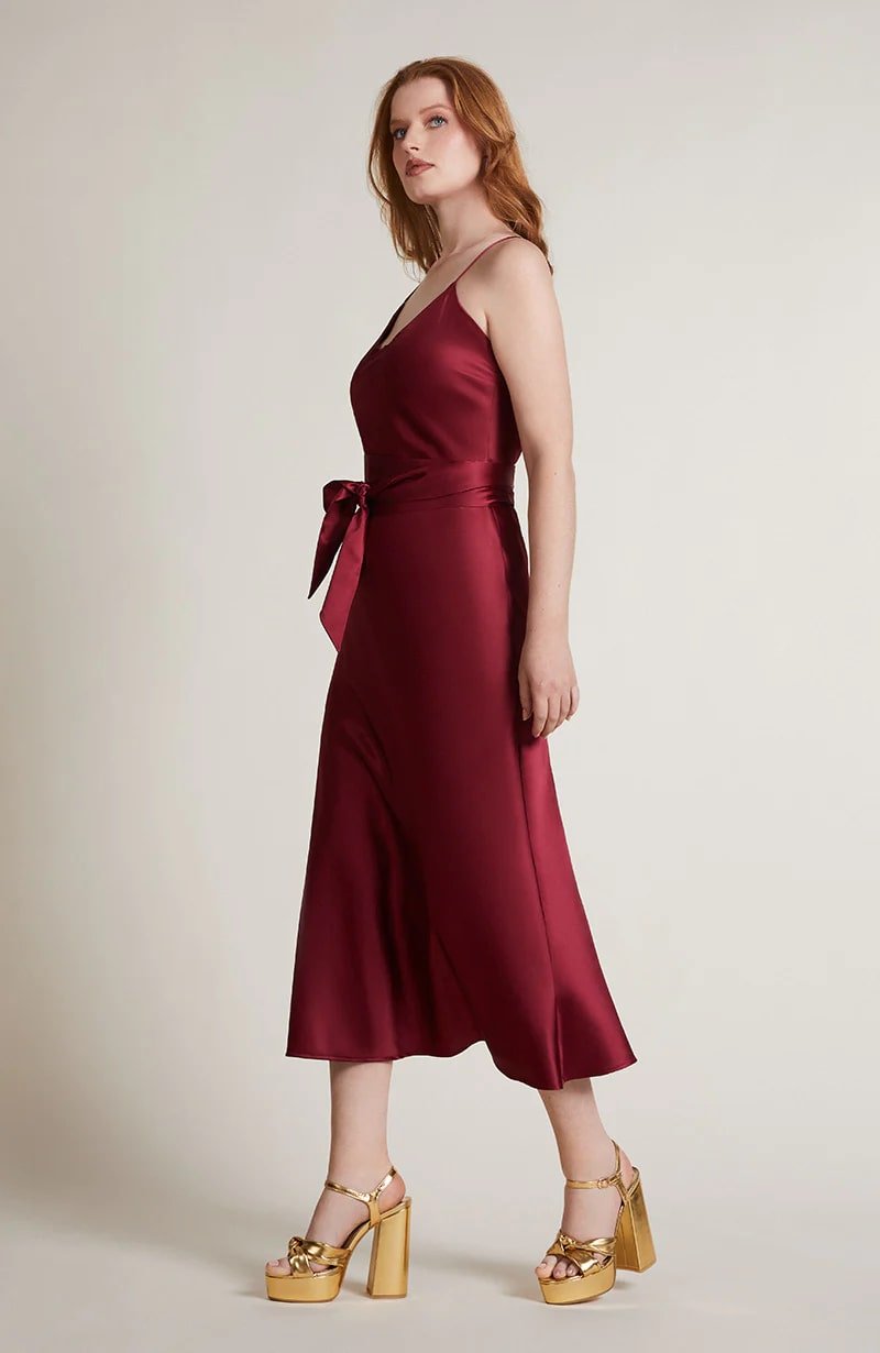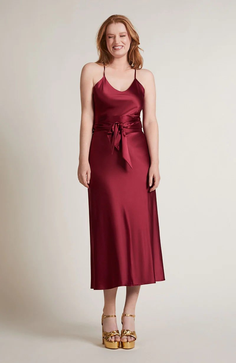 Subtly seductive and effortlessly cool, say hello to the Brooklyn dress. Cut on the bias for a flattering fit, the Brooklyn slip dress features a detachable waist tie and low, cross back spaghetti strap detail with adjusters to heighten or lower the neckline for a better fit. Designed to be worn again and again and available in Chianti Burgundy satin, this is one hell of a bridesmaids dress and is sure to shine at any occasion.