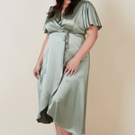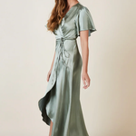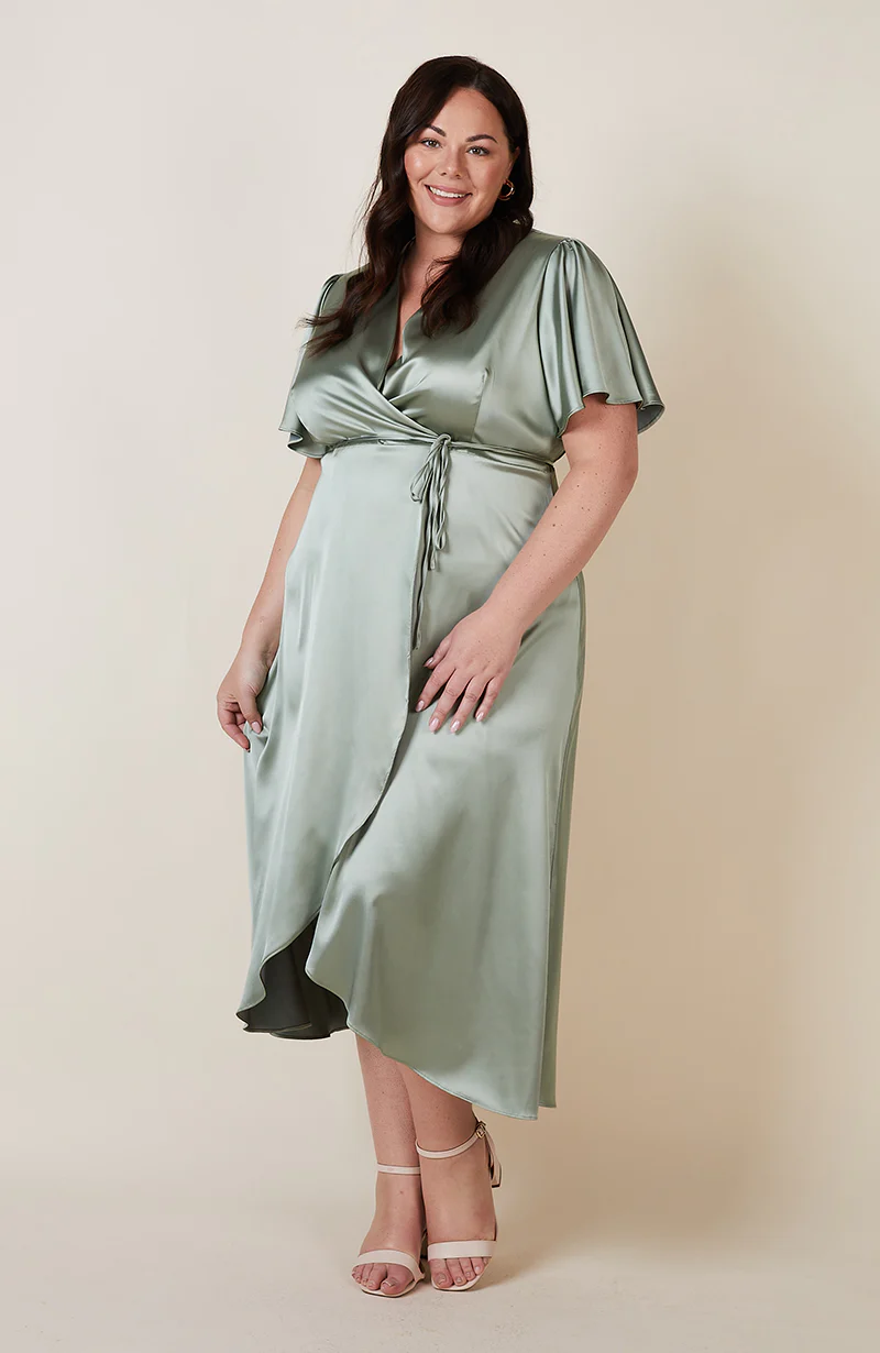 The Florence Waterfall hem bridesmaids wrap dress is crafted in the most beautiful satin.