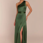 The Porto is a floor-length one-shoulder bridesmaids dress. Designed in London, mix and match with our Brooklyn and Florence Waterfall styles for the perfect satin bridesmaids look.