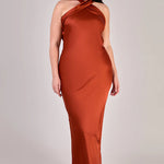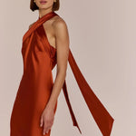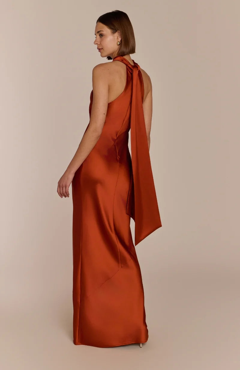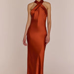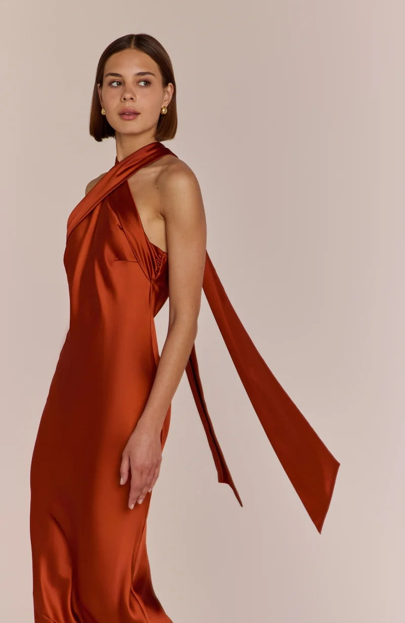REWRITTEN Roma Bridesmaid Dress in Burnt Orange Satin